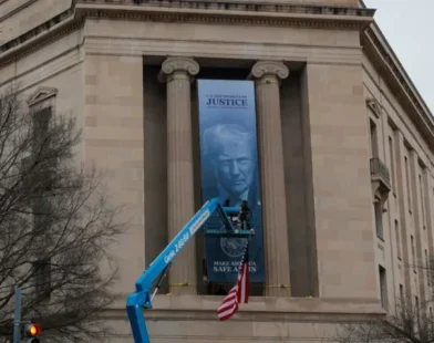 Trump Banner Raised at Justice Department Sparks Criticism Over Institutional Independence