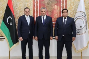 أعلن المجلس الرئاسي الليبي، إلى جانب رئيس حكومة الوحدة الوطنية ورئيس المجلس الأعلى للدولة، عن تشكيل الهيئة العليا للرئاسات”، في خطوة تهدف إلى تنسيق القرار الوطني في الملفات الاستراتيجية وتعزيز الانسجام بين مؤسسات الحكم.