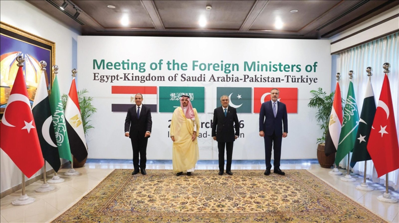 تستضيف العاصمة الباكستانية إسلام آباد اجتماعا رباعيا يضم وزراء خارجية باكستان والسعودية ومصر وتركيا لبحث سبل خفض التوتر في الشرق الأوسط.