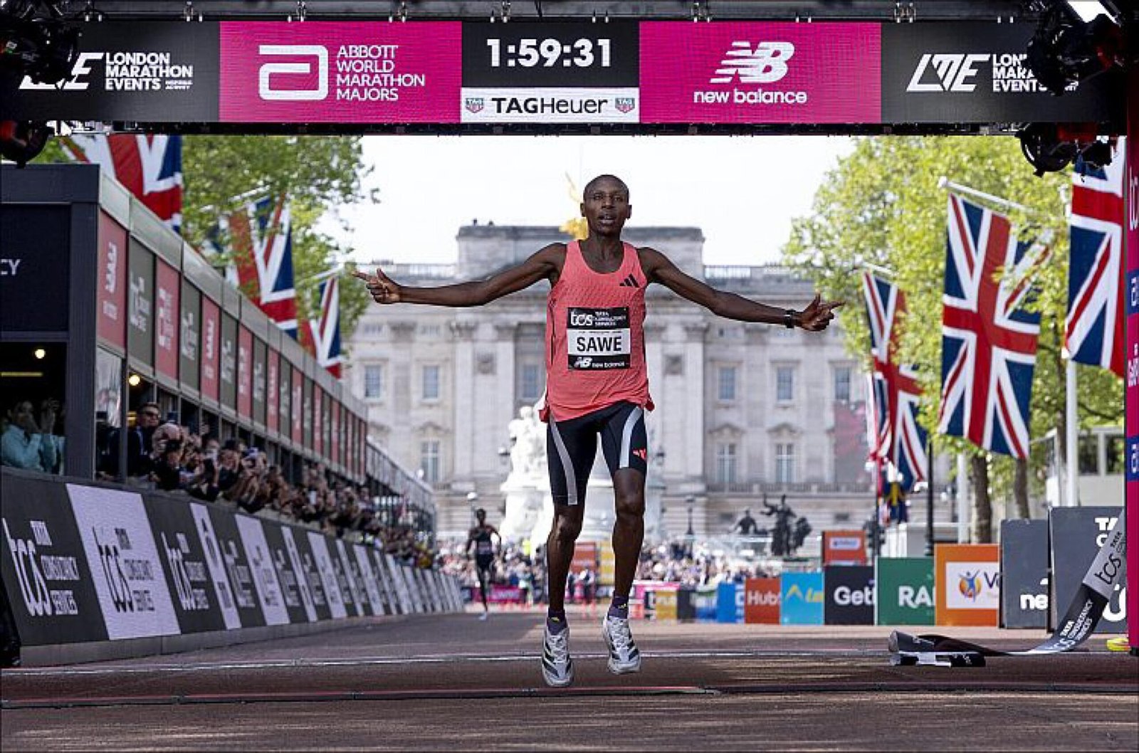 Kenyan runner Sebastian Sawi achieved a historic milestone by winning the London Marathon in 1:59:30, becoming the first athlete to break the two-hour barrier in an official competitive race.
