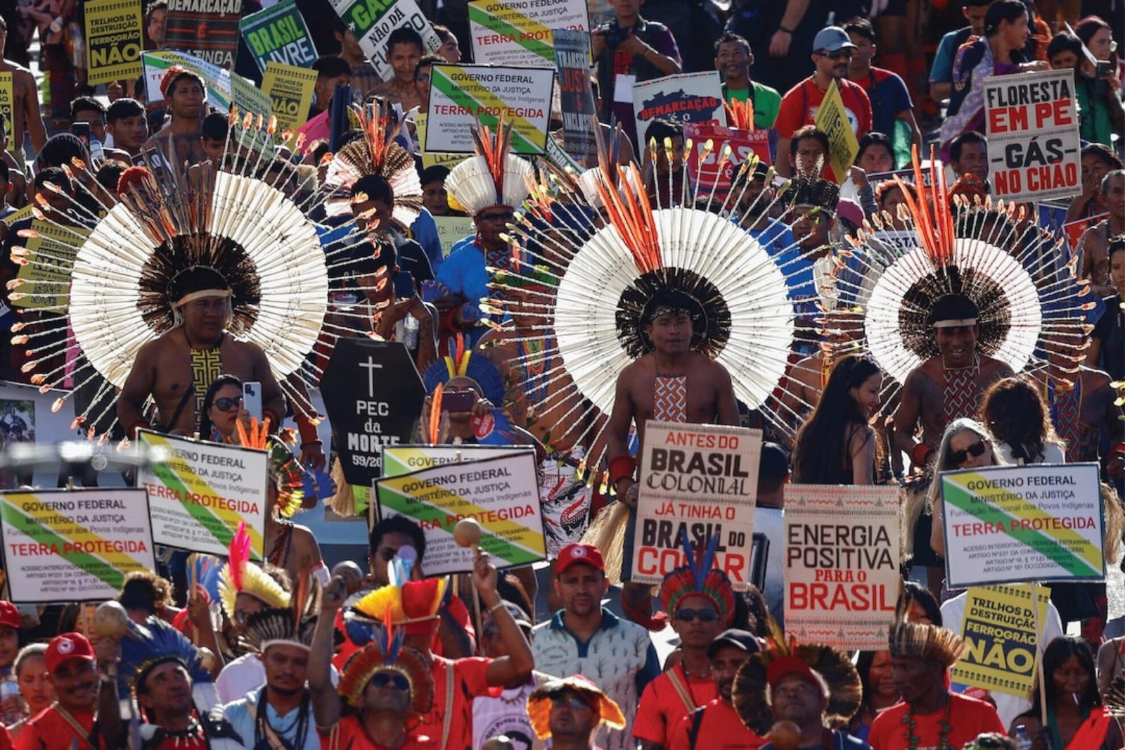 Thousands of Indigenous people protested in Brazil’s capital, Brasília, as part of the “Free Land Camp” demonstration, demanding recognition of their lands ahead of upcoming elections.