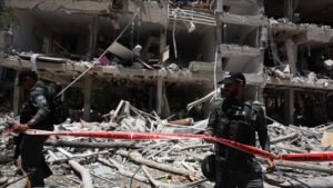 Israel’s Channel 12 reported that two people were killed after debris from an Iranian missile struck a construction site in the city of Yehud, near Tel Aviv.