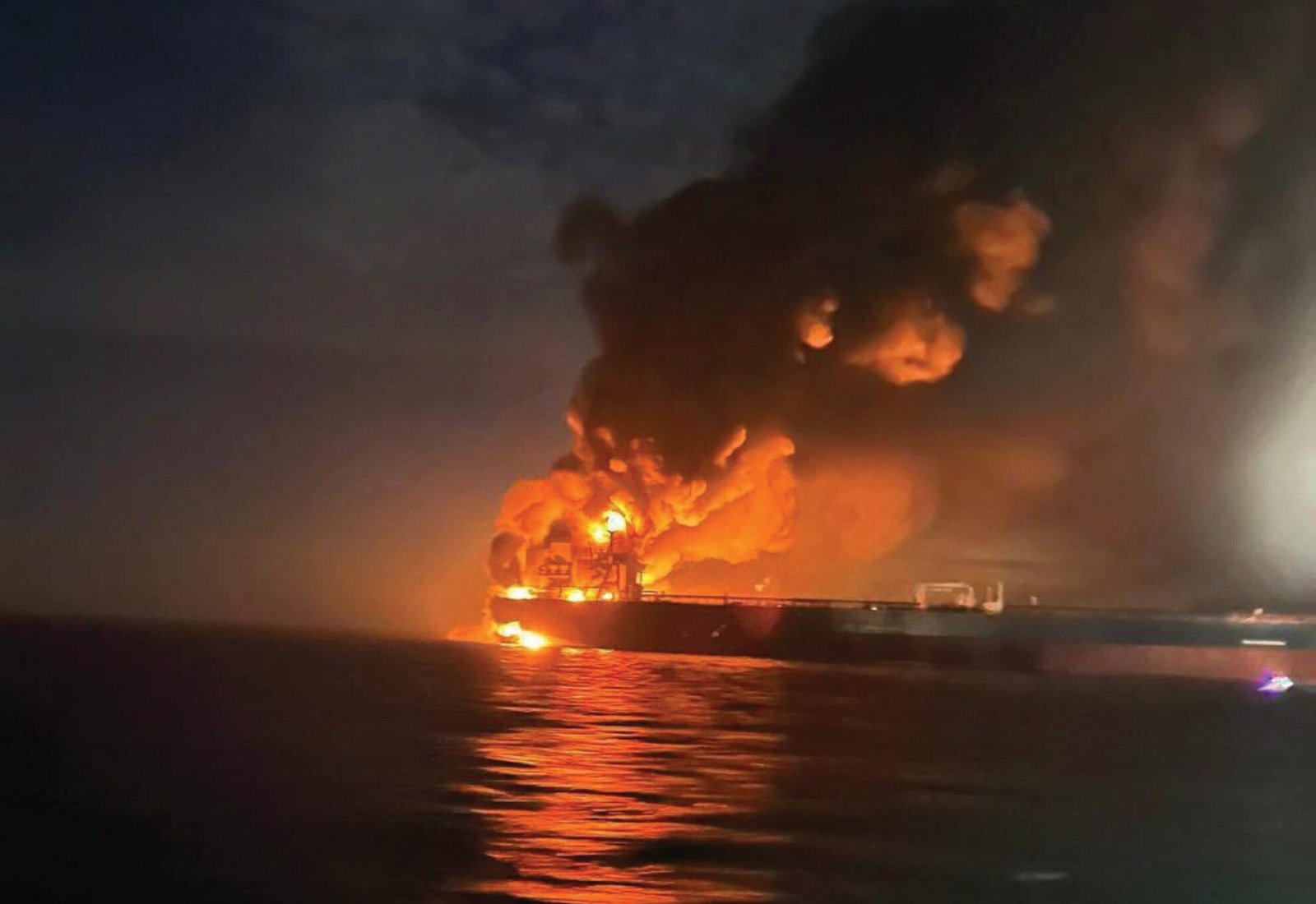 An intelligence official said the documented footage shows unmanned boats heading toward the two vessels before powerful explosions ignited fires on board.