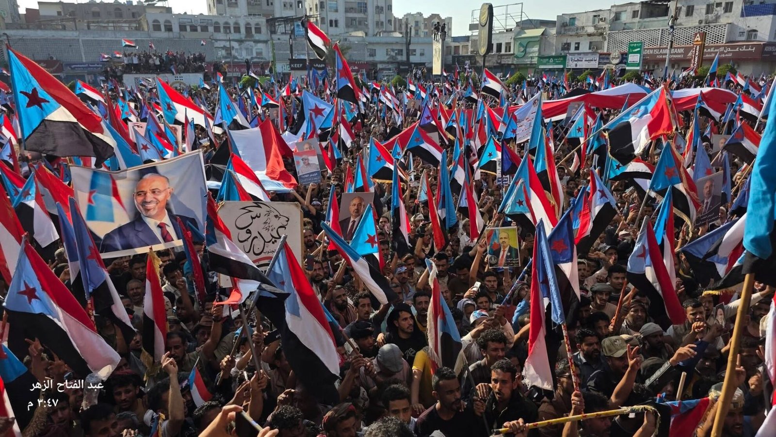 Crowds chanted slogans calling for southern secession from the north, highlighting the deepening divide between the STC and Aden’s government despite Saudi-led mediation efforts.